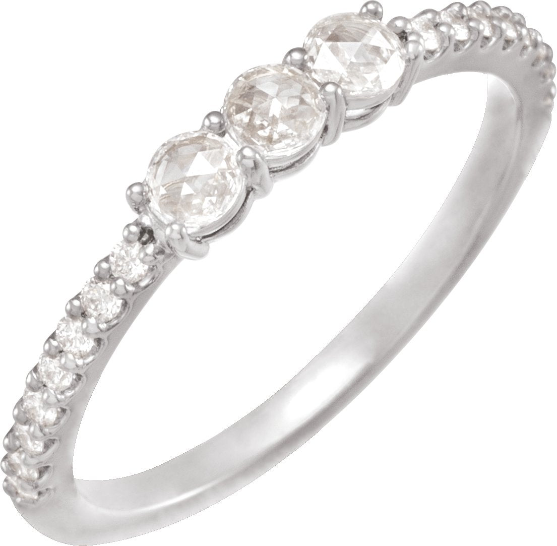 14K White 1/3 CTW Natural Rose-Cut Diamond Three-Stone Anniversary Band