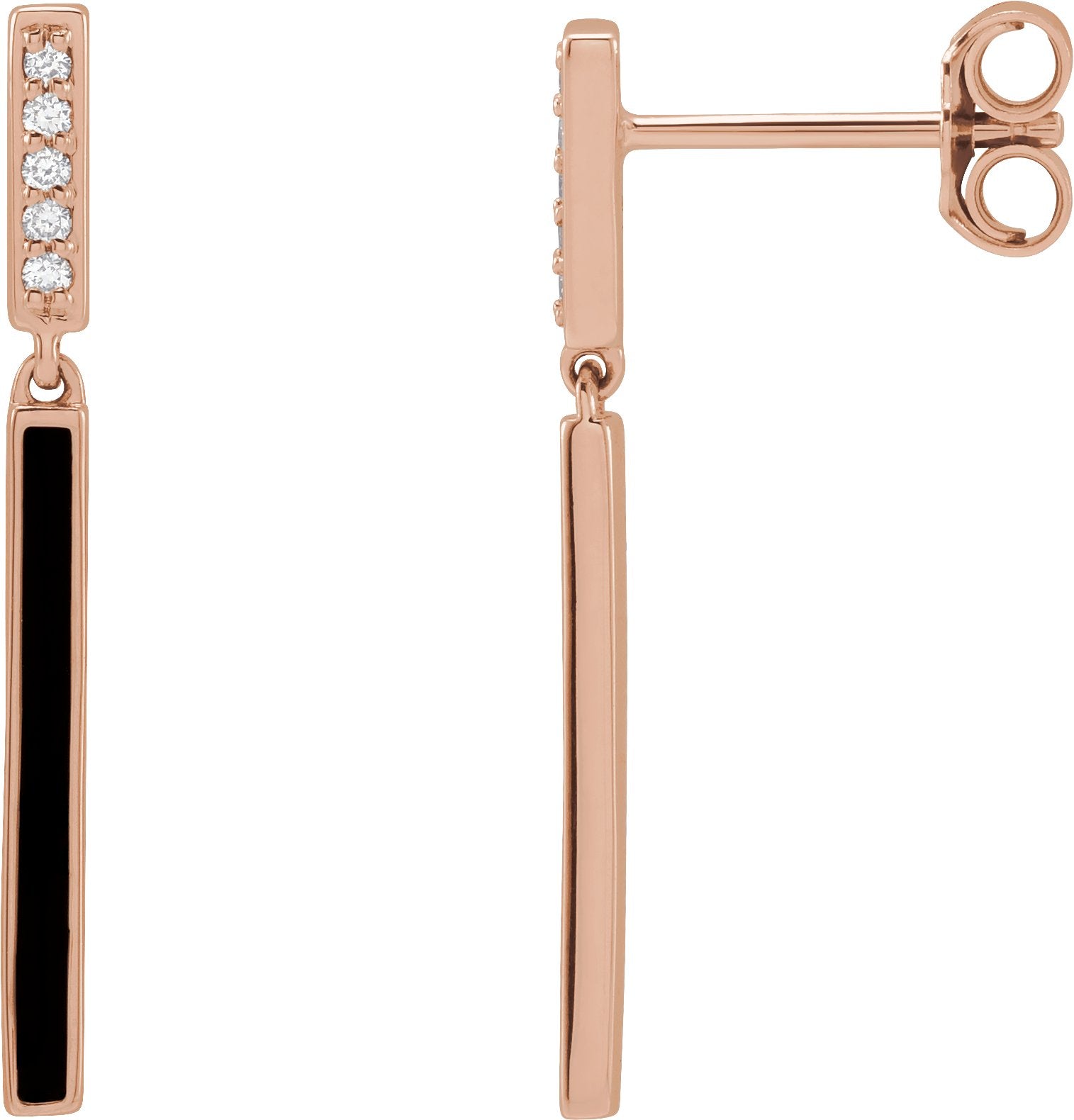 14K Rose .06 CTW Natural Diamond & Black Enamel Bar Earrings