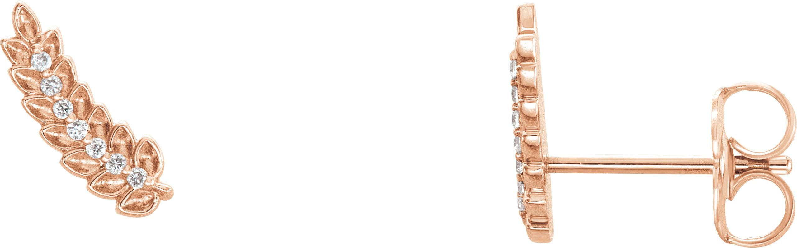 14K Rose .03 CTW Natural Diamond Leaf Ear Climbers