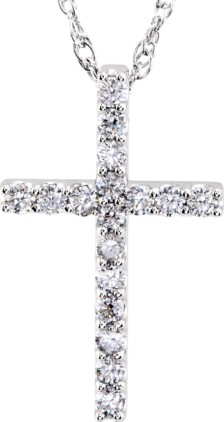 14K White 1/4 CTW Natural Diamond Petite Cross 18" Necklace
