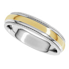 14K White/Yellow 5 mm Half Round Milgrain Comfort-Fit Band