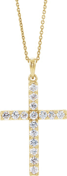 14K Yellow 1/8 CTW Natural Diamond Cross 18" Necklace