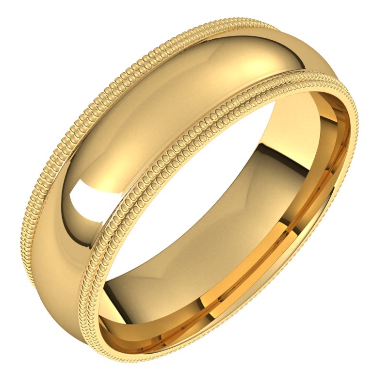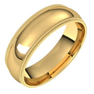 14K Yellow 6 mm Double Milgrain Comfort-Fit Half Round Band Size 7.5