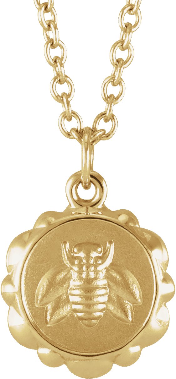 14K Yellow Gold Bee Medallion 16-18" Necklace
