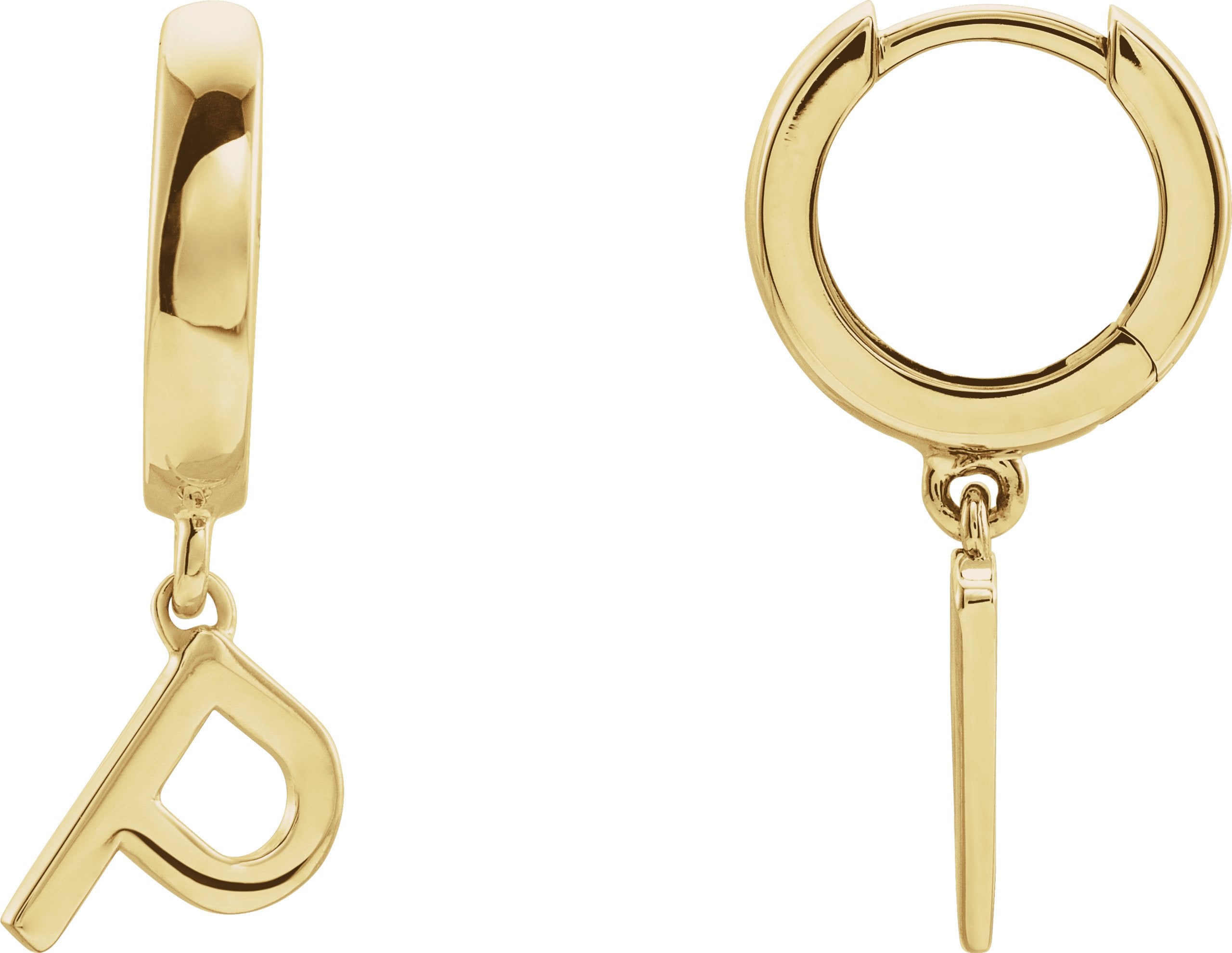 14K Yellow Gold Initial P Hinged Huggie Earring