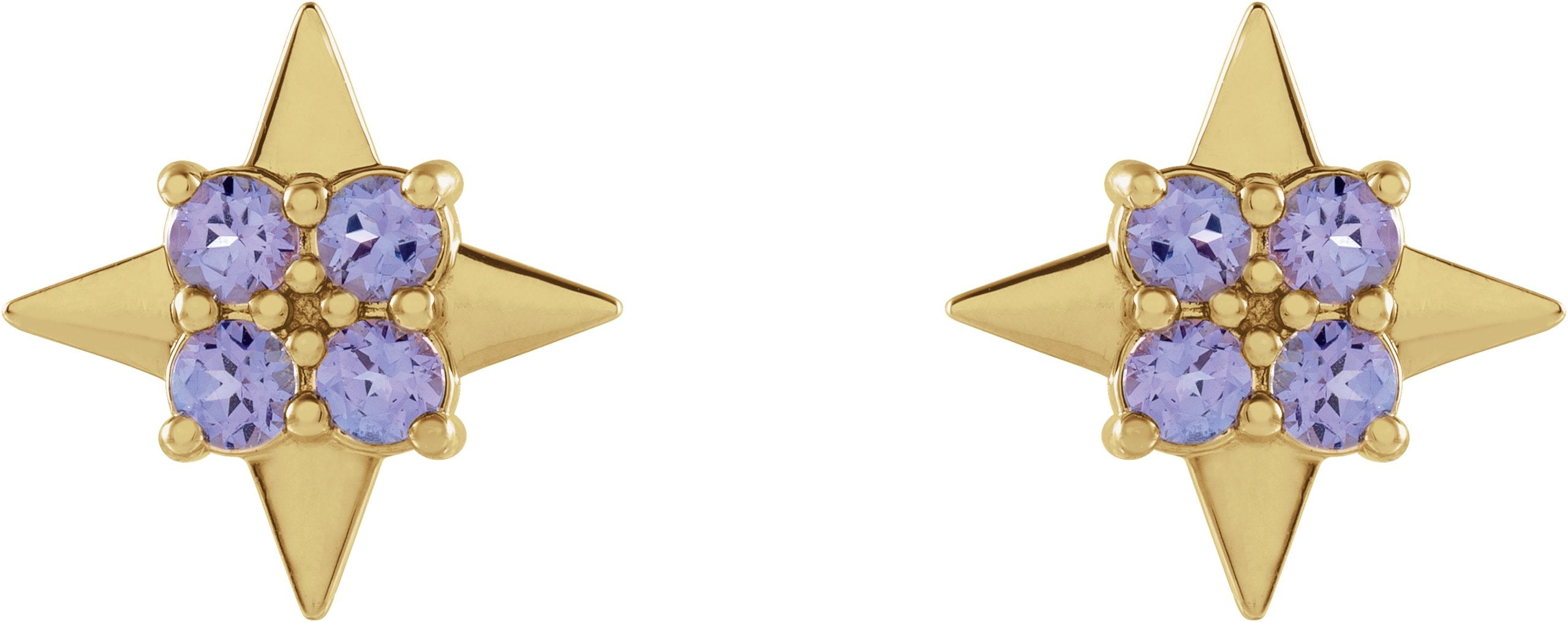 14K Yellow Gold Natural Tanzanite Star Earrings