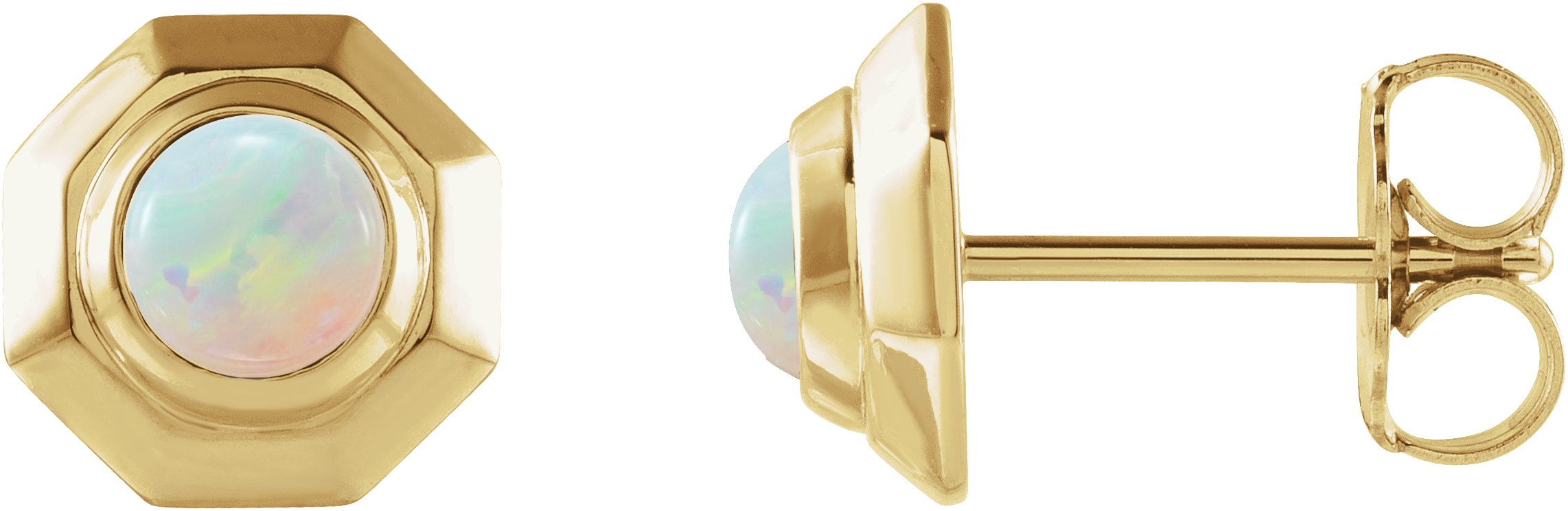 14K Yellow Gold Natural White Opal Geometric Cabochon Earrings