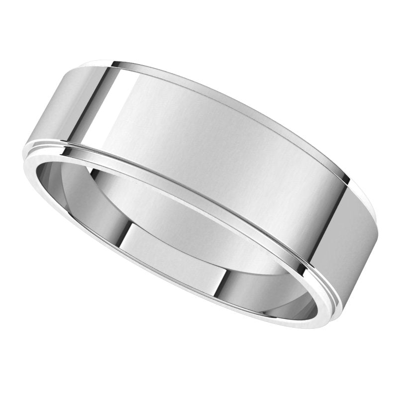 18K White 6 mm Stepped-Edge Flat Band Size 8.5