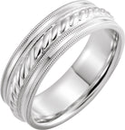 Continuum Sterling Silver 7 mm Milgrain Edge Rope Comfort-Fit Half Round Band Size 11